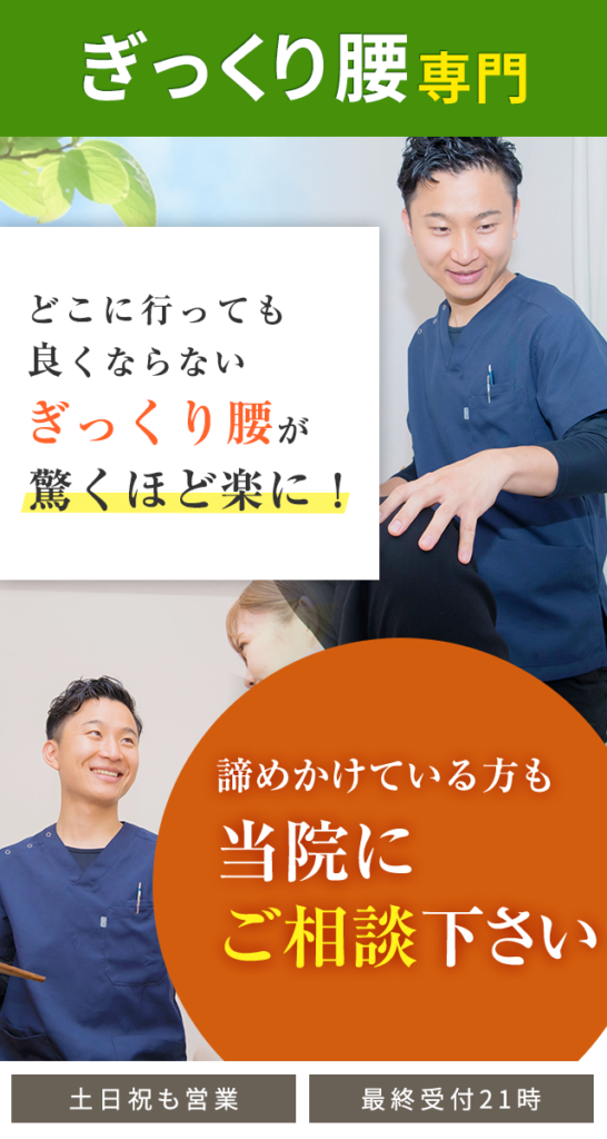 「動けない位痛いギックリ腰が当日で歩けるように!」