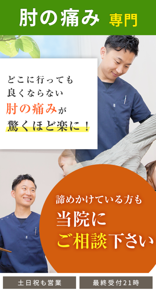 慢性化すると、安静時にも肘の痛みがひどく普段の生活にも支障を来してしまいます。